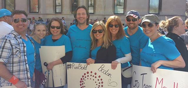 This was Many Hopes’ first year as a John Hancock Charity Partner running the Boston Marathon, and it was exciting! Each year, John Hancock donates guaranteed race entries to select non-profit organizations, which use these entries to recruit individual runners to raise money for their cause. Last year, John Hancock non-profit runners raised more than $10 million for over 140 organizations.